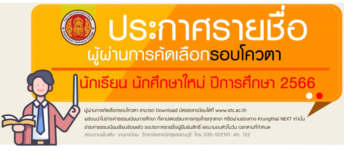 สอบถามเพิ่มเติม งานทะเบียน วิทยาลัยเทคนิคสุพรรณบุรี โทร. 035-522101 ต่อ 122