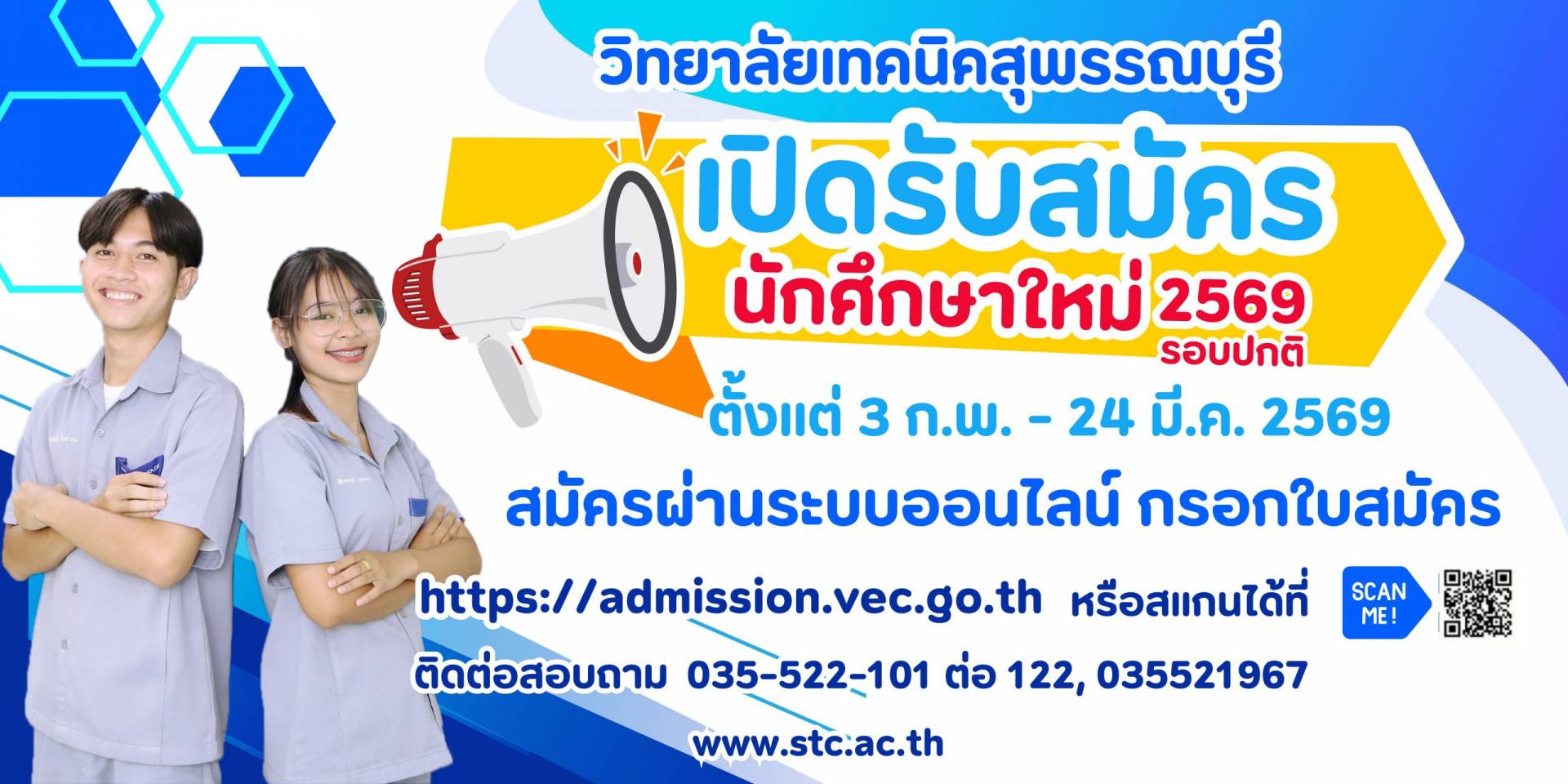 วิทยาลัยเทคนิคสุพรรณบุรี กำลังรับสมัครนักเรียน นักศึกษาใหม่ ประจำปีการศึกษา 2566 ตั้งแต่บัดนี้เป็นต้นไป