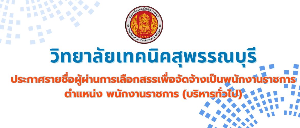 ตามที่ ได้มีประกาศวิทยาลัยเทคนิคสุพรรณบุรี ลงวันที่ 25 สิงหาคม 2566 เรื่อง รับสมัครบุคคลเพื่อเลือกสรรคเป็นพนักงานราชก...