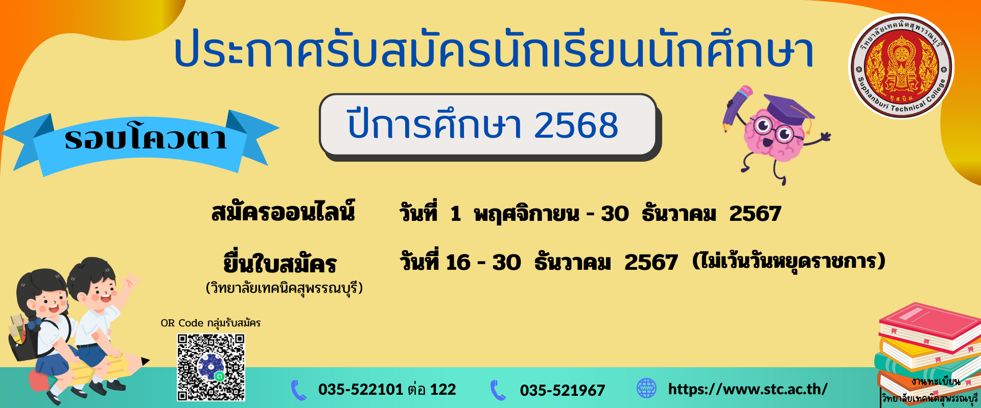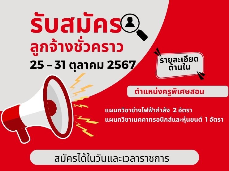 การรับสมัครคัดเลือกบุคคลเพื่อจัดจ้างเป็นลูกจ้างชั่วคราว วิทยาลัยเทคนิคสุพรรณบุรี ด้วยวิทยาลัยเทคนิคสุพรรณบุรี จะดำเนินการรับสมัครคัดเลือกบุคคลเพื่อจัดจ้างเป็นลูกจ้างชั่วคราวของวิทยาลัยเทคน�... read more