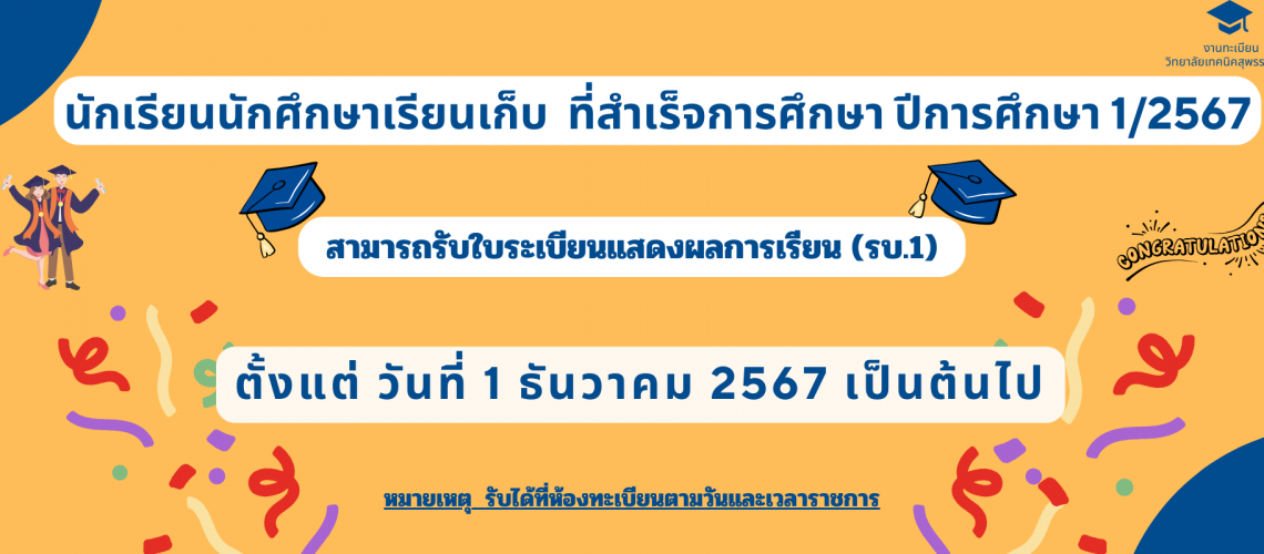 สามารถรับใบระเบียนแสดงผลการเรียน (รบ.1)