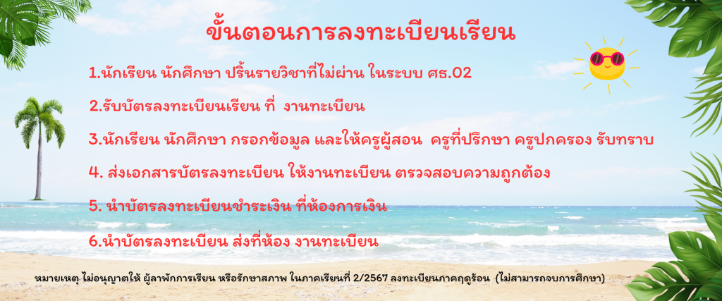 กำหนดการลงทะเบียนภาคฤดูร้อน ปีการศึกษา 2567
