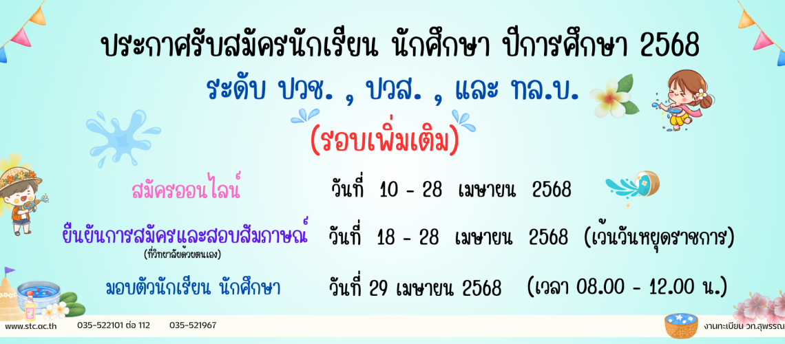 สมัครเรียนออนไลน์ วันที่ 10 -28 เมษายน 2568 (ไม่เว้นวันหยุดราชการ) ยืนยันสมัครเรียนและสอบสัมภาษณ์ วันที่ 18 – 28 เมษายน 2568 (เว้นวันหยุดราชการ) มอบตัวนักเรียน นักศึกษา วันที่ 29 เมษายน 2568 เวลา 08.00 – 12.00 น. คุณสมบัติระดับปริญญาตรี (ทล.บ.)