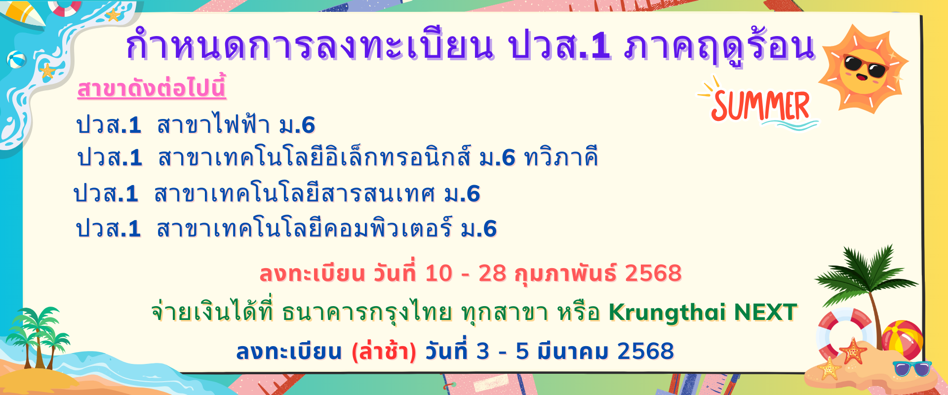 กำหนดการลงทะเบียน ภาคฤดูร้อน ปวส.1 (ม.6) สาขาต่อไปนี้