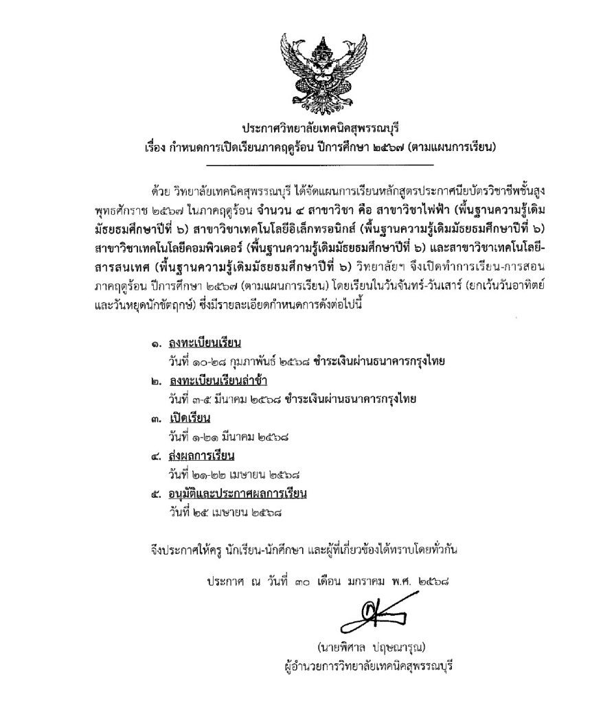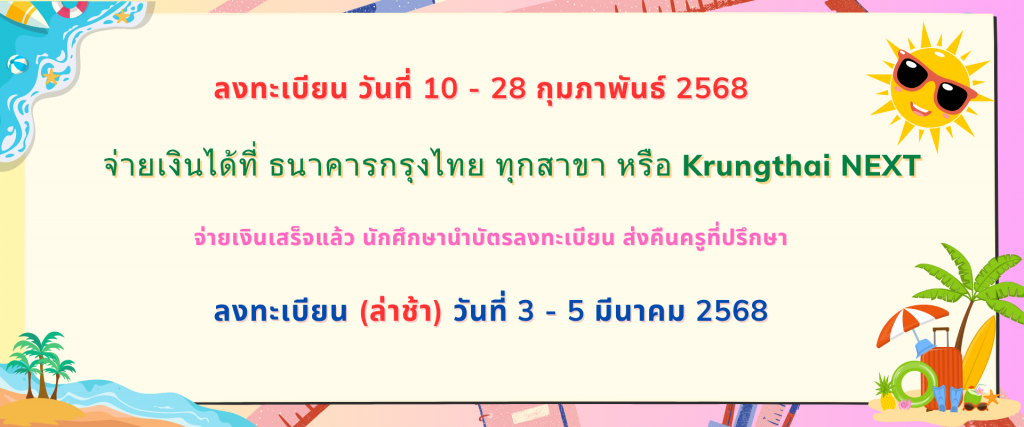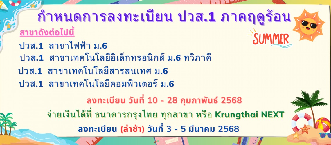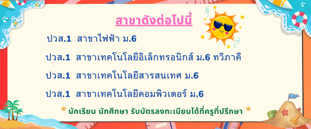 กำหนดการลงทะเบียน ภาคฤดูร้อน ปวส.1 (ม.6) สาขาต่อไปนี้